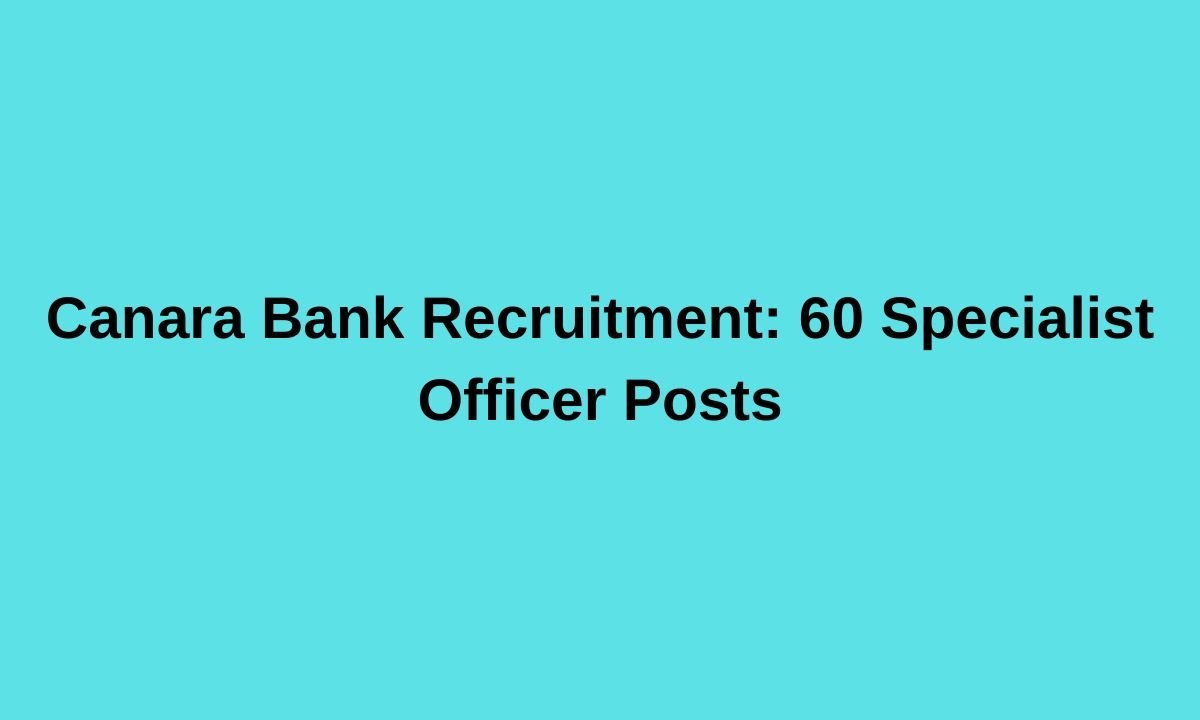 Canara Bank Recruitment 2025: 60 Specialist Officer Posts