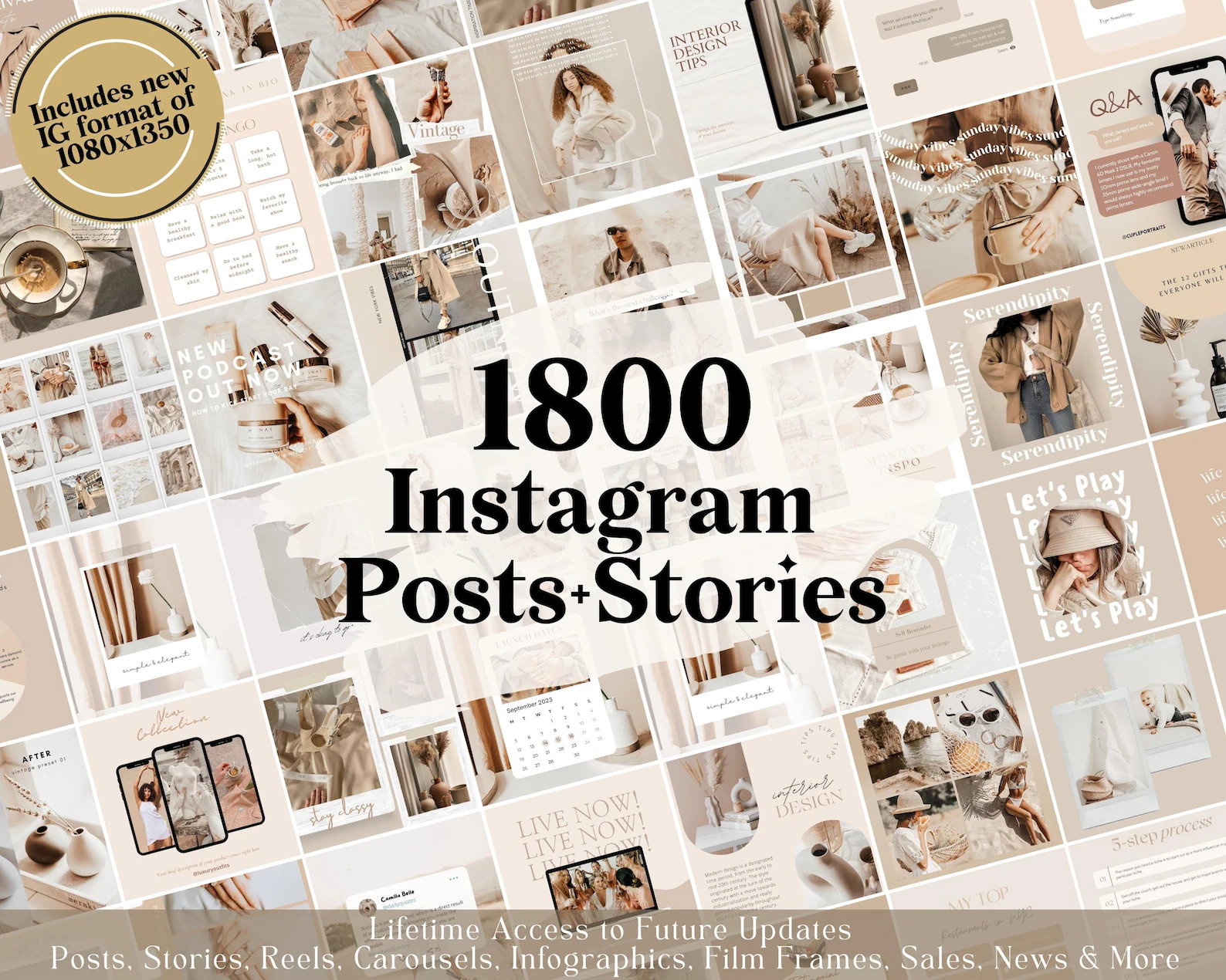 1800 Neutral Instagram Post Templates – Engagement – Story Templates